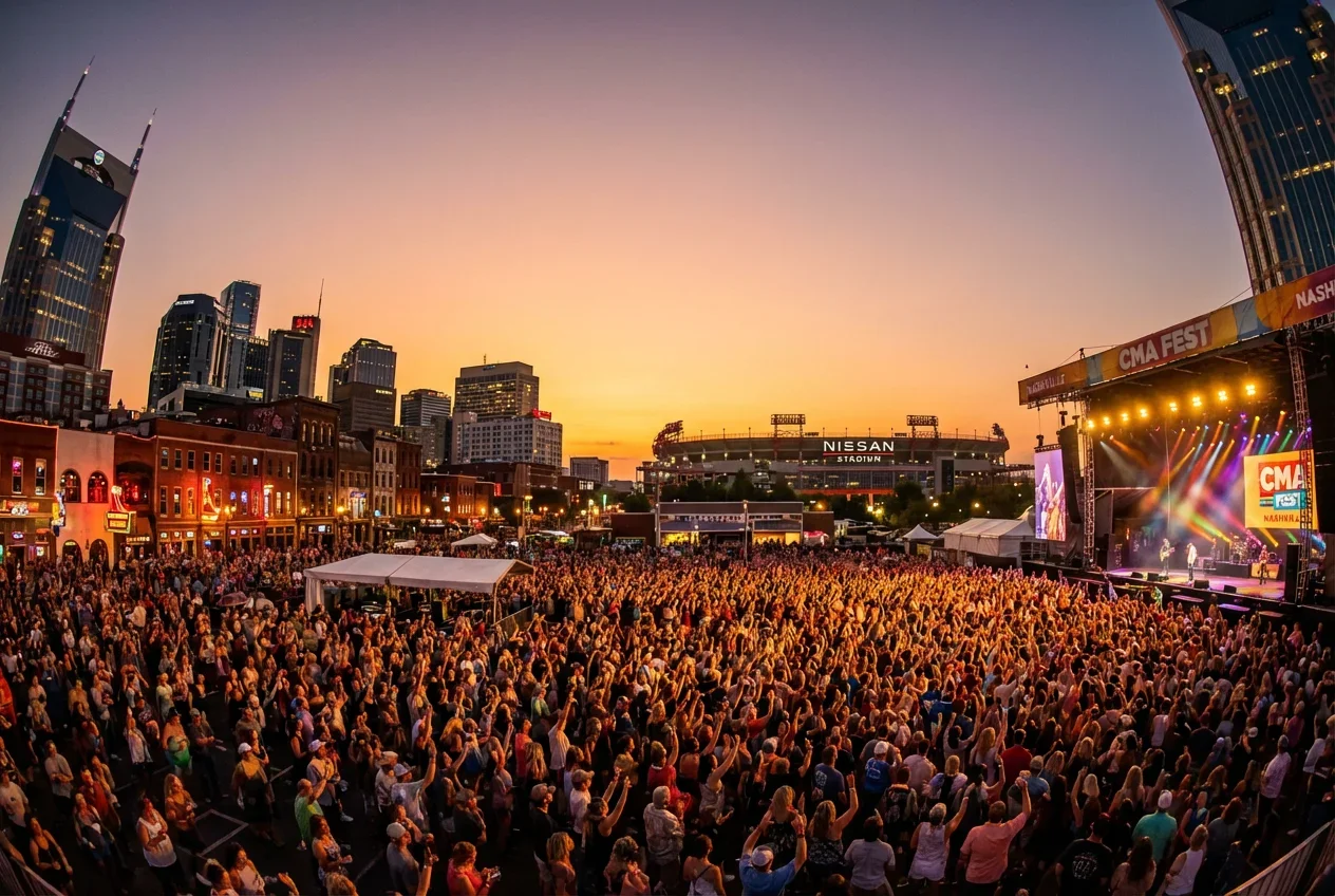 CMA Fest packs downtown Nashville every June with four days of country music across multiple stages, fan meetups, and nightly stadium shows at Nissan Stadium.