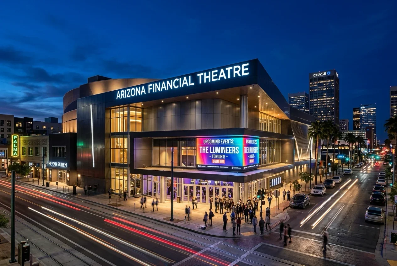 Arizona Financial Theatre (formerly Comerica Theatre) is Phoenix's primary mid-size concert and comedy destination, and the 5,000-seat capacity puts it in the range where you're close enough to see actual facial expressions without a jumbotron. The mix of orchestra floor seating, a lower bowl, and balcony levels gives it real versatility for different types of shows. Comedy shows work especially well here - the sightlines and sound setup make it feel like a proper comedy venue rather than a repurposed arena.